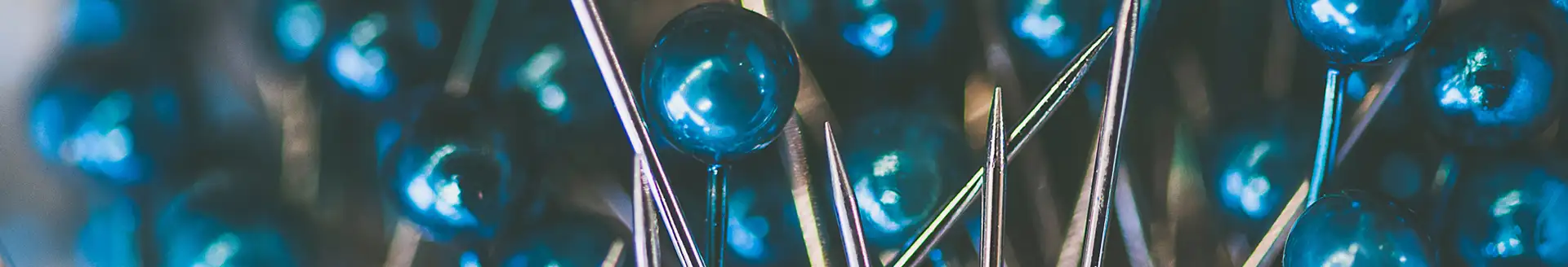 Otros artículos de mercería como, reglas de patchwork y patronaje, alfileres profesionales de diferentes grosores, dedales, portaconos, cuentahilos, enhebradores y descosedores, entre otros.
