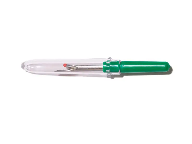 Descosedor y abreojales pequeño con capucha de plástico. Color Verde.