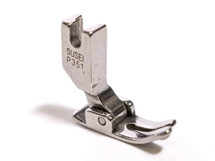 Prensatelas de arrastre simple P351, ancho con cola trasera elevada. Para máquinas industriales.