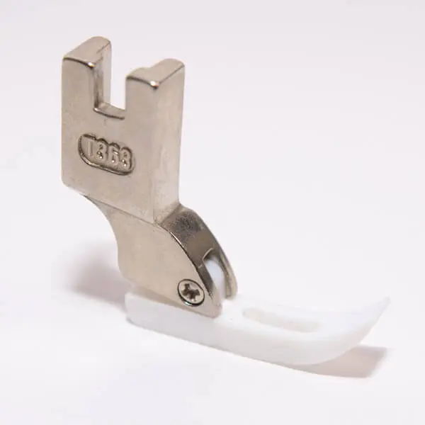 Prensatelas estrecho de teflón para cremalleras, cerrado. Para máquinas industriales.